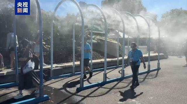 在天气的“炙烤模式”下,墨尔本公园内的很多现场观众都聚在了水雾风扇和水雾门前降温,或大口吃起了冰激凌,在高温中等待复赛。(总台记者 王聪)